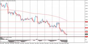 Стоит отметить, что на часовом графике сформировалась медвежья дивергенция по индикатору MACD, что сигнализирует о возможной смене направления движения цены.