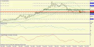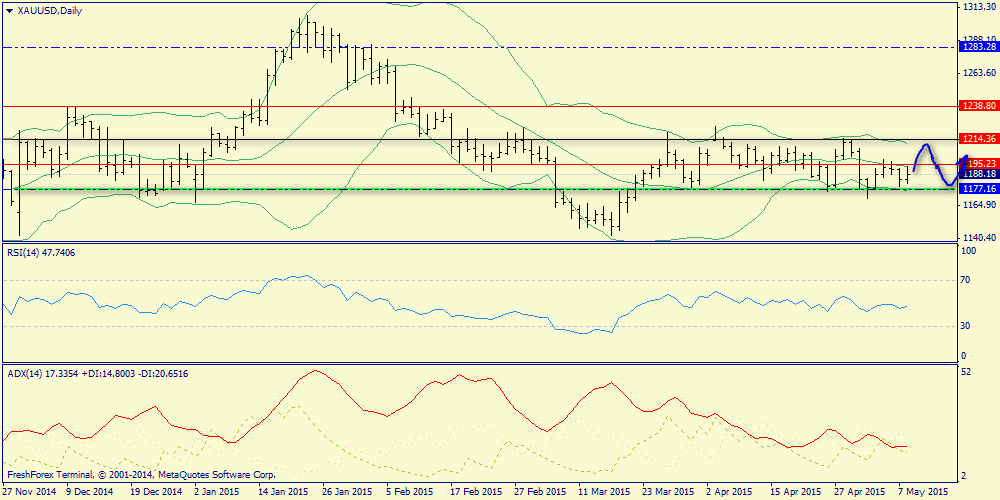 Недельный график: аналогичная картина. Диапазон - 1135.46-1283.28, но скорее всего цена будет примагнрпичена к зоне средней полосы Боллинджера (1214.36)
