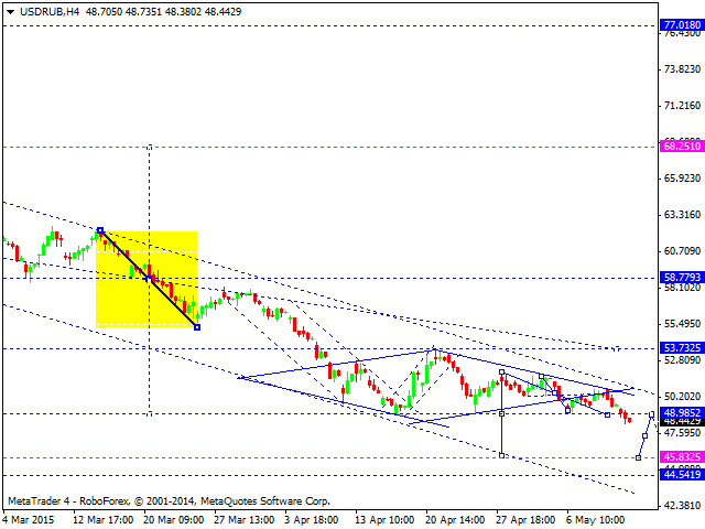 Российский рубль пробил 49.00 вниз. На очереди - восстановление к уровню 50.40. Далее - опять снижение на отработку уровня 46.00. Затем - тест снизу уровня 49.00. И не исключается развитие ещё одной структуры снижения к уровню 44.00.