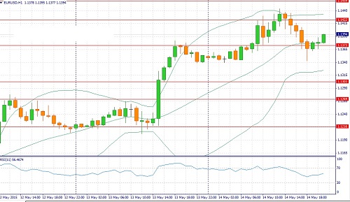 В первой половине дня можно ожидать продолжения восходящей тенденции по двум причинам. Во-первых, доходность немецких 10-летних государственных облигаций растет по отношению к своим аналогам из США и Великобритании, что будет поддерживать спрос на единую европейскую валюту. Во-вторых, динамика товарного рынка сейчас также играет против американской валюты. Рост котировок сырьевых товаров оказывает негативное влияние на доллар, поскольку стоимость сырья деноминирована в американской валюте и в периоды роста цен стоимость доллара снижается. На этом фоне можно ожидать роста котировок в область 1.1450 фигуры, где трейдеры могут начать фиксировать прибыль по двум причинам. Во-первых, впереди выходные и некоторые инвесторы традиционно сокращают свои позиции. Во-вторых, отчет по промышленному производству в США может порадовать участников рынка. Рост производственных заказов в марте позволяет рассчитывать на выход данных по промышленному производству чуть лучше медианы прогнозов. На этом фоне, в течение дня следует открывать позиции Buy на снижении котировок в область 1.1360/1.1325 и фиксировать прибыль на отметке 1.1450. На сегодня можно выделить следующие уровни: уровни поддержки 1.1373 - 1.1303 и уровни сопротивления: 1.1422 -1.1459.