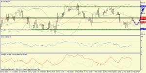 Дневной технический анализ по GBP/USD Сопротивление 3: $1.5945 (максимум 11 ноября) Сопротивление 2: $1.5900 (психологический уровень) Сопротивление 1: $1.5825 (максимум 27 ноября) Текущая цена: $1.5727 Поддержка 1: $1.5631 (минимум 13 мая) Поддержка 2: $1.5521 (максимум 8 мая) Поддержка 3: $1.5390 (минимум 11 мая) 14-ти дневный индекс относительной силы (RSI (14) на D1) преодолел уровень 70, что сигнализирует о возможной смене направления движения цены. Также добавим, что на часовом графике сформировалась медвежья дивергенция по индикатору MACD.