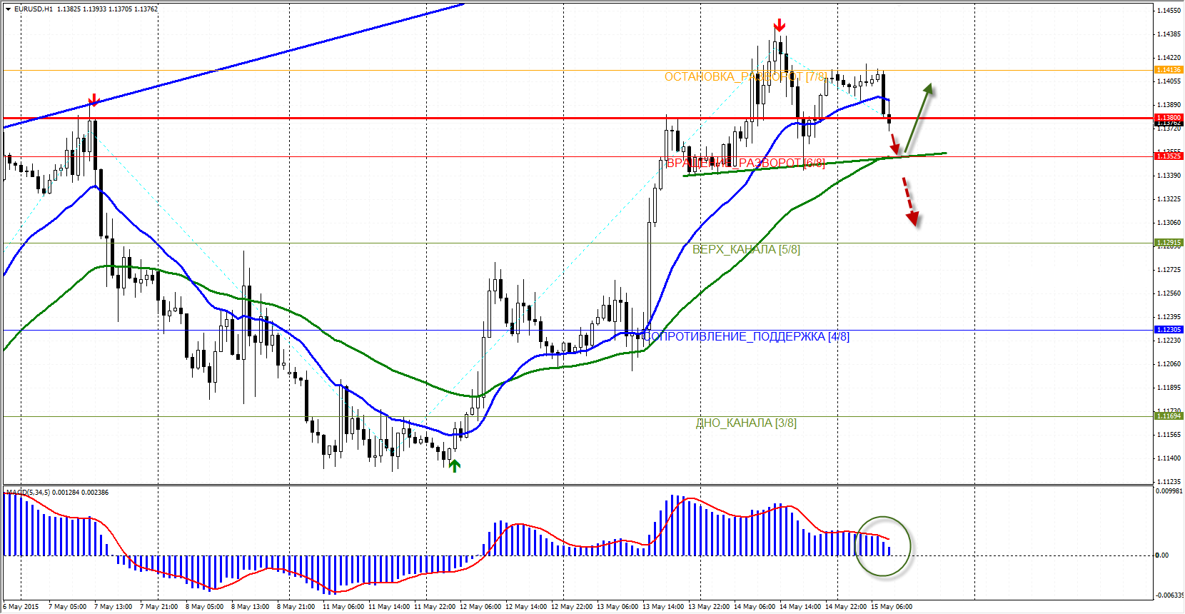 Сценарий №2: продажа ниже уровня 1.1335 с целью 1.1250.