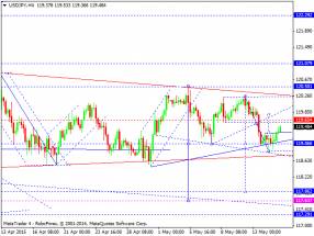 После того как пара USDJPY снизилась в область 118.90, быки оживились и теперь их целями остаются уровни 120.50 и 120.85. Прорыв последнего из них откроет дорогу для штурма годовых максимумов около 122.00.