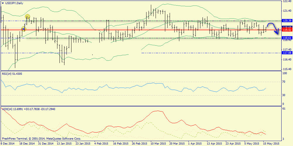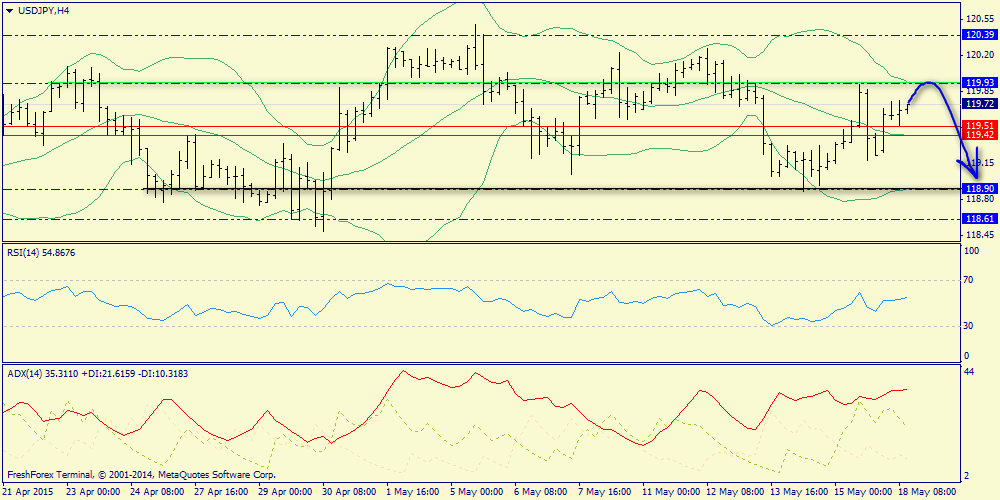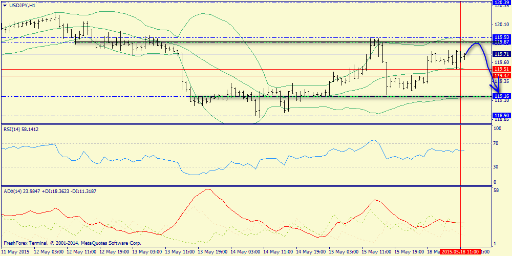 В паре USD/JPY в споре быков и медведей победителя выявлено не было. Восходящая тенденция на ведущих мировых фондовых площадках поддержала спрос на доллар и в моменте котировки достигали отметки 119.92, однако после выхода негативных отчетов из Штатов японская валюта смогла восстановить утраченные позиции и завершить торги на отметке 119.23.