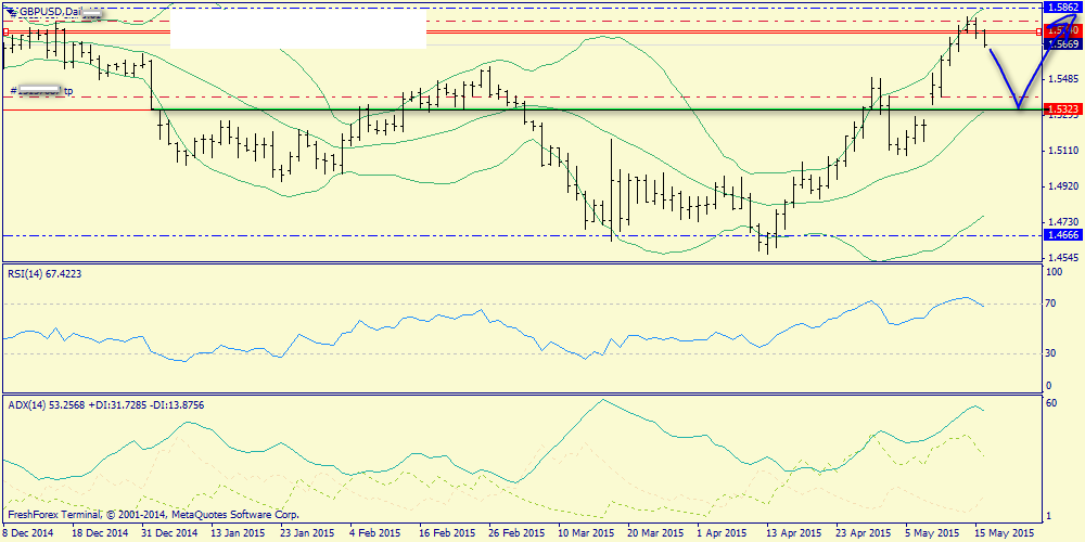 Дневной график: явная коррекционная фаза движения (без отмены общего северного потенциала) и технически глубина коррекции может находиться вплоть до средней полосы Боллинджера (1.5323)