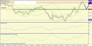 В азиатскую торговую сессию Япония опубликует отчет по заказам на машины и оборудование за март. Рост производственных заказов указывает на выход позитивных данных, однако в большинстве случае японская йена реагирует на высокие цифры снижением котировок, поскольку сильные данные поддерживают спрос на фондовой бирже в Токио и наблюдается увеличение операции carry trade, через японскую йену. Однако с учетом негативной макроэкономической статистики из Штатов по промышленному производству и уверенности потребителей от института Мичигана – трудно рассчитывать на сильное укрепление американской валюты. Более того, позитивная динамика товарного рынка будет оказывать давлением на американскую валюту. На этом фоне в течение дня следует ожидать развития флэта в рамках диапазона 118.70 -119.70. Необходимо выделить следующие уровни: уровни поддержки: уровни поддержки: 118.98 – 118.58 и уровни сопротивления: 119.29 – 120.09.