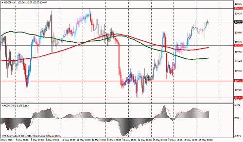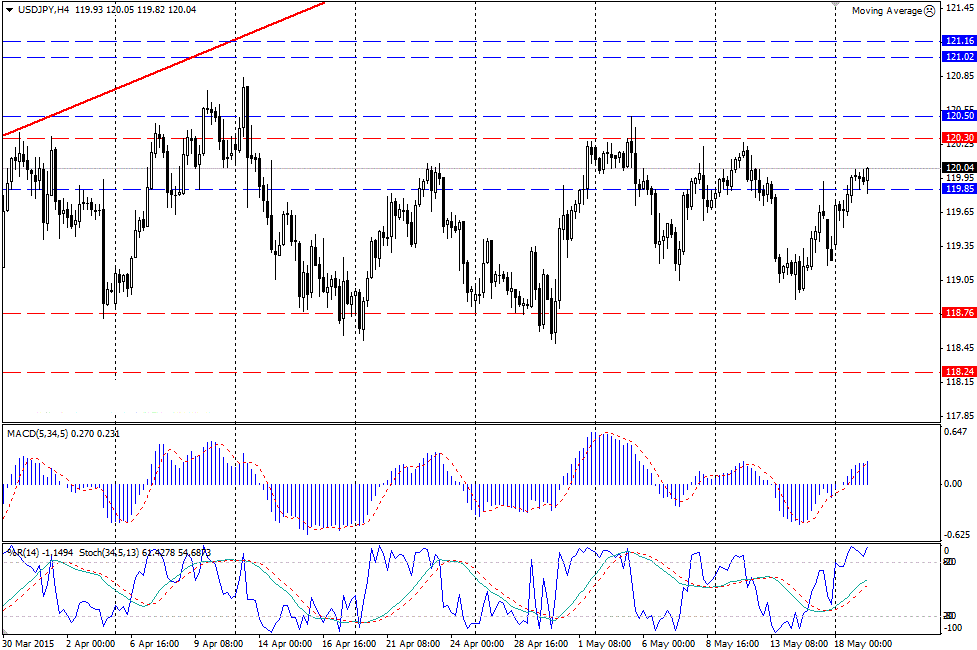 Предположения прошлого комментария, что у «быков» наращивается потенциал, подтверждаются. Цена возобновила рост и сейчас пытается закрепиться выше уровня 119.80/90. Торговля ведется на отметках 120.00/05. Показания индикаторов уже дружно сигнализируют о продолжении подъема — графики R% и MACD остаются направленными вверх и к ним присоединился SS. Очевидно, в ближайшее время будет протестирована ключевая преграда на пути вверх – сопротивление на 120.30/50, которое не раз сдерживала атаки «быков». Пробой этого препятствия с закреплением торгов выше обозначит, как упоминалось ранее, начало развития очередного этапа восходящего долгосрочного тренда. Первая цель в этом случае будет сопротивление на уровне 121.00/20, а далее 121.80/90.