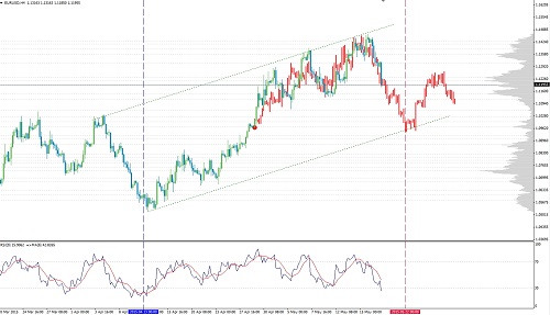 Здесь краткосрочное восходящее движение ожидаем в коридоре 136.00 – 136.39, пробой последнего значения продолжит развитие восходящего цикла от 11 мая, в данном случае цель – 137.22, в коридоре 137.22 – 137.48 консолидация цены. Потенциальным значением для верха считаем уровень 138.17. Отмены развития восходящего цикла ожидаем после прохода ценой шумового диапазона 135.27 – 135.02, здесь первая цель – 134.43. Основная тенденция – развитие восходящей структуры от 11 мая, стадия глубокой коррекции.