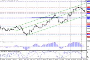Цена продолжила понижение, пробила поддержку на уровне 1.1280/90 и сейчас уже находится на отметках 1.1180/70. Такой разворот событий обозначался в прошлом комментарии, как сигнал о масштабной коррекции. Индикаторы уже единогласно пророчат успех понижению. Очевидно, сценарий предусматривающий снижение цены к поддержке на 1.1040/50, тоже упоминавшийся ранее, находится в стадии реализации и скоро этот уровень будет протестирован. Пробой же уровня 1.1040/50, а вместе с ним и линии тренда восходящего канала (синие линии), даст очень серьезные аргументы полагать о произошедшем развороте и возобновлении среднесрочного «медвежьего» тренда. Возможно, некоторые проблемы нисходящему движению может создать промежуточная поддержка на уровне 1.1130/20.
