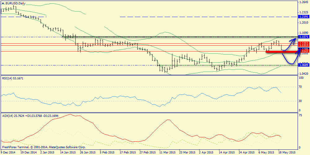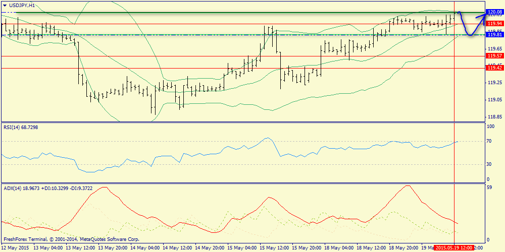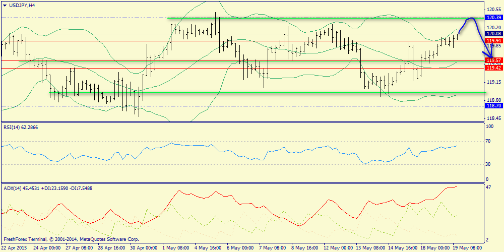 Дневной график: предельным уровнем роста "гейши" представляется верхняя стенка канала (120.39), откуда мы можем ждать новое снижение в направлении 118.70