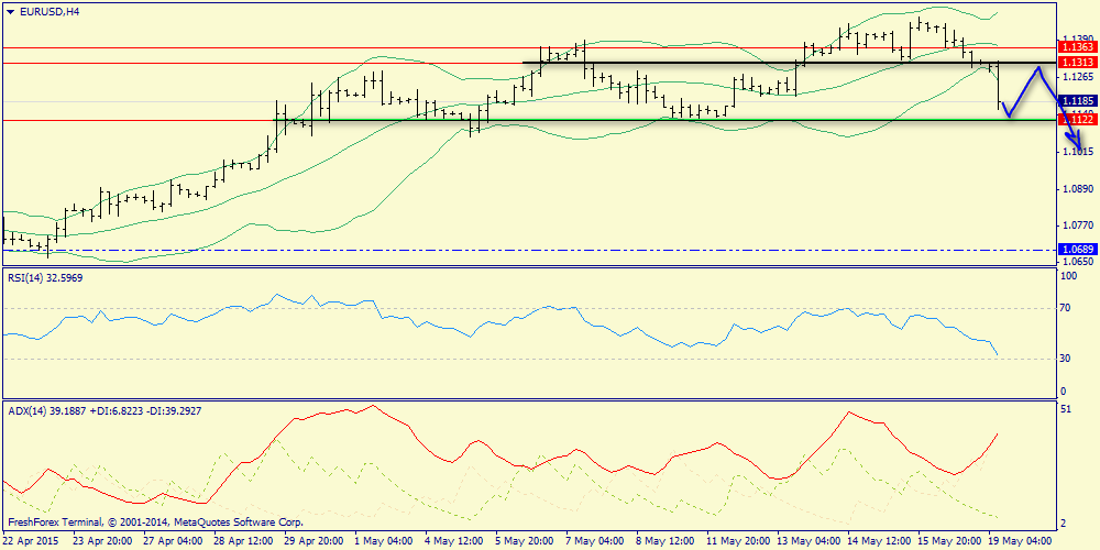 Н4: наблюдаем пробой нижнего конверты, поэтому абсолютным позиционным преимуществом обладают продавцы. При этом допустим откат к средней линии (1.1313), откуда мы и будем снова продавать.