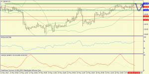 Н4: пробой нижнего конверта Боллинджера - так же сильный шорт-сигнал. Впрочем, при таком сценарии допустим предварительный откат в зону средней линии. Хотя параметры ADX столь сильны, что все может произойти без каких-либо коррекций.