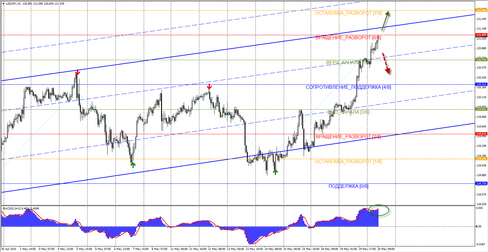 Сценарий №1: покупка выше уровня 121.10 с целью 122.00.