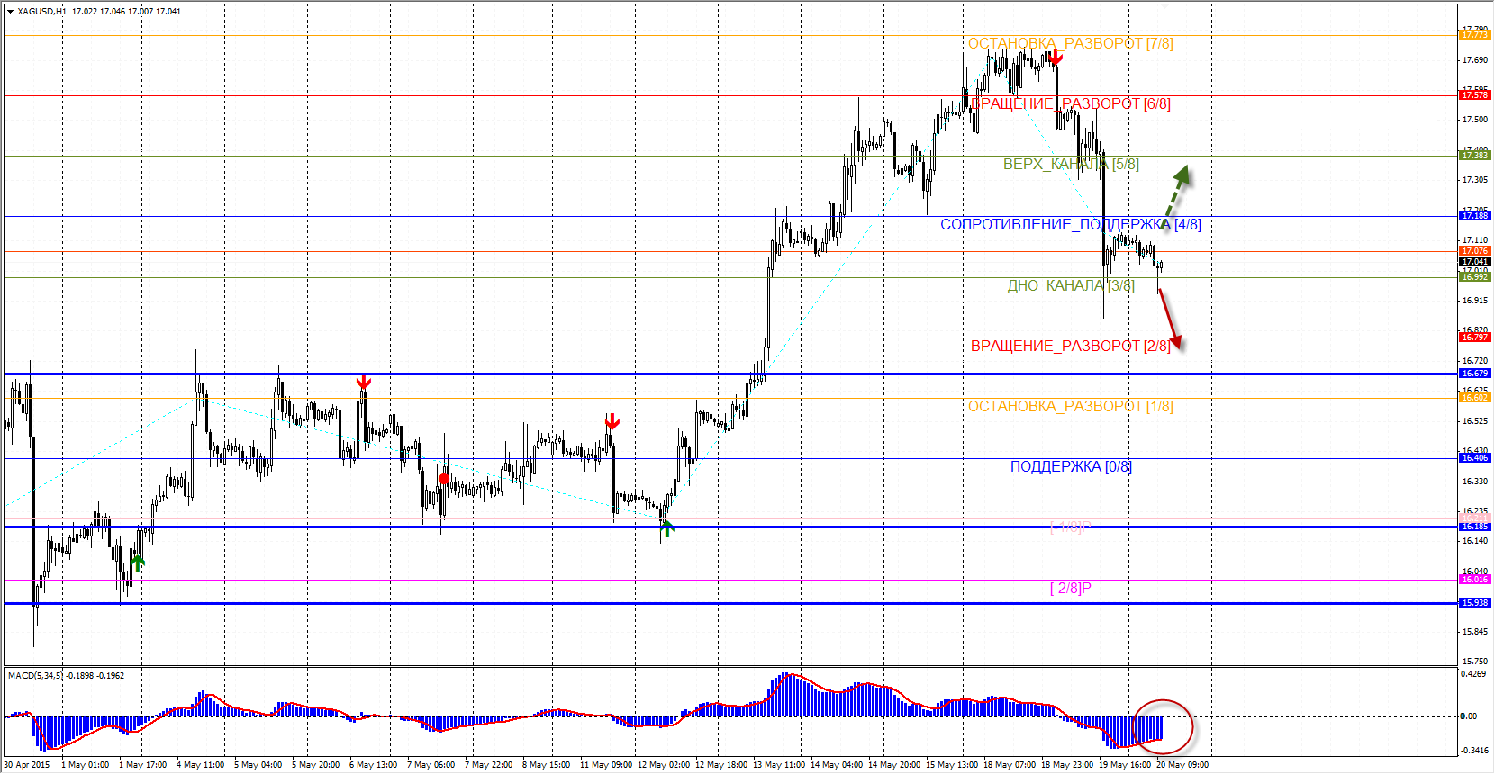 Сценарий №1: продажа ниже уровня 16.90 с целью 16.50.