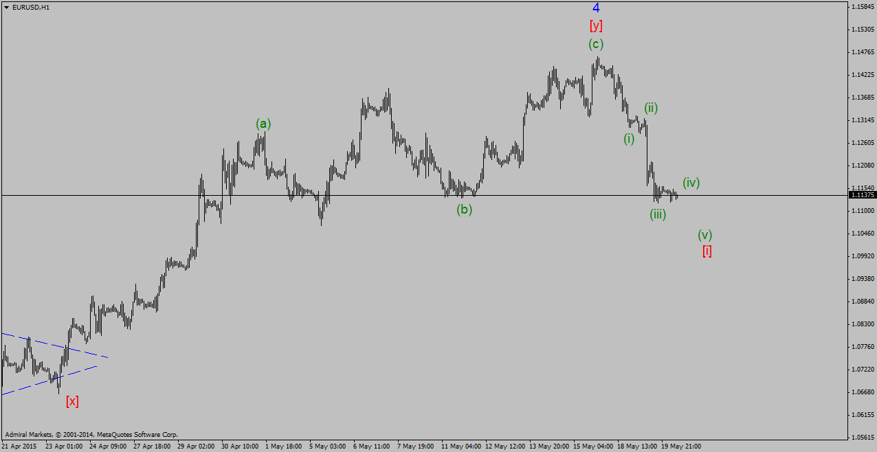 Коррекция в рамках волны (ii) получилась неглубокой. В приоритете развивается волна (iv) of [i]. Вероятно, в виде треугольника. Как минимум еще одно обновление низов ожидаю. Цель ближайшая - 1.1050