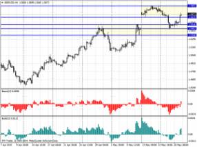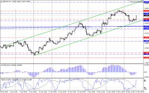 Пробой уровня 1.5550/10 оказался ложным проколом. Поддержка вблизи линии тренда восходящего канала (зеленые линии) спровоцировала откат вверх и сейчас торговля ведется на отметках 1.5650/60. Часть индикаторов вернула показания на сторону «бычьих» предпочтений, однако «медвежья» направленность SS предлагают не спешить с выводами, сигнализируя о возможном возобновлении понижения. Очевидно, в сложившихся условиях есть риск продолжения подъема, который может протянуться к новым максимумам, т.к. торговля ведется очень близко от уровня 1.5700/10, пробой которого обозначался как сигнализирующий о возобновлении «бычьего» движения. В то же время, до закрепления пары выше 1.5700/10 «медведи» не утратили шансов вернуть себе преимущество. Падение цены от текущих уровней будет хорошим аргументом полагать, что началась боковая консолидация в диапазоне 1.5700-1.5510, по завершении которой нисходящий тренд продолжится.