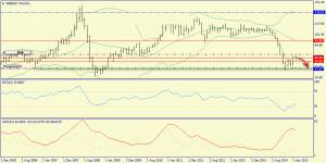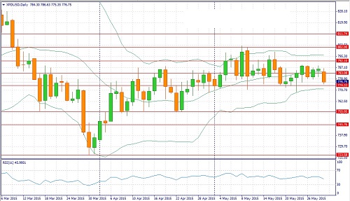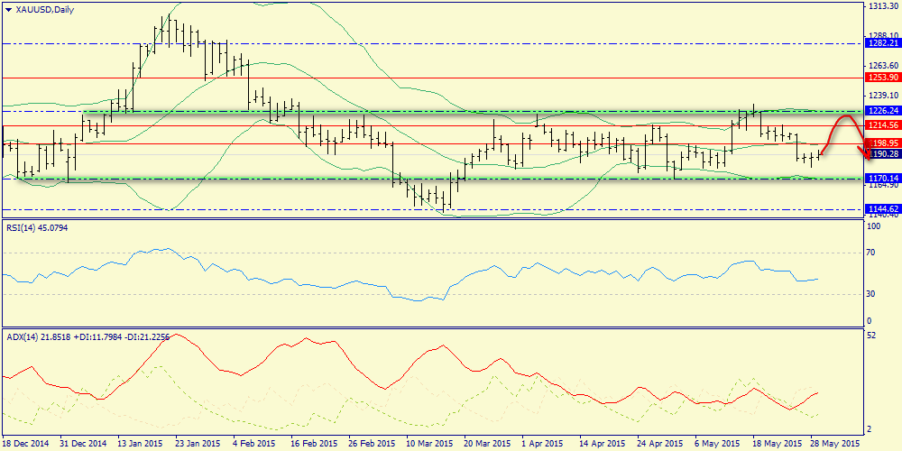 В течение недели следует ожидать продолжение нисходящего тренда. Во-первых, инвесторы ожидают от ФРС ужесточения монетарной политики, что будет усиливать спрос на доллар и в свою очередь оказывать давление на драгоценный металл. По итогам минувшей недели дифференциал доходностей краткосрочных и долгосрочных американских казначейских облигаций сократился на 6.7 б.п., что является лучшим тому доказательством. Во-вторых, из Индии поступает информация, что правительство активно пропагандирует покупки иных финансовых инструментов, нежели физическое золото. Спрос на металл со стороны Индии начинает постепенно снижается, что также является негативным фактором для XAU/USD. В-третьих, по итогам пятничного саммита ОПЕК в Вене не стоит ожидать изменений в политике картеля, поскольку в первом квартале участники ОПЕК отчитались о росте добычи нефти. К тому же текущие котировки находятся на 41% выше январских минимумов, что также может устраивать ключевых игроков нефтяного картеля. На этом фоне, в течение недели можно следует открывать позиции Sell на росте котировок в область 1197/1208 и фиксировать прибыль отметке 1171.