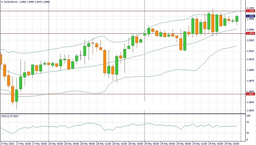Пара EUR/USD по итогам дня потяжелела на 0.37%. Кроме слабых данных из США росту котировок способствовала позитивная статистика из Германии. Розничные продажи по итогам апреля выросли на 1.7%, что приободрило трейдеров на открытие длинных позиций.