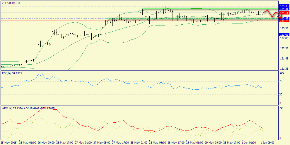 В течение дня следует ожидать развития боковой тенденции. С одной стороны, в пятницу мы наблюдали распродажи на американском и японском фондовом рынке, что указывает на отсутствие спроса на рисковые активы. Этот фактор в свою очередь будет сдерживать укрепление пары доллар/йена, поскольку инвесторы будут закрывать сделки carry trade и уходить в японскую валюту. Долговой рынок также указывает на остановку восходящей тенденции: сокращение отрицательного дифференциала доходностей государственных облигаций Японии и США, указывает на преобладание медвежьих настроений. С другой стороны, во второй половине дня можно ожидать умернно позитивного отчета по деловой актвиности в производственном секторе от ISM, что будет способствовать открытию длинных позиций в расчете на продолжение сильного восходящего тренда. На этом фоне в течение дня следует ожидать развития боковой тенденции в рамках диапазона 123.55 -124.55. Необходимо выделить следующие уровни: уровни поддержки: уровни поддержки: 122.90 – 122.02 и уровни сопротивления: 124.12 – 124.45.