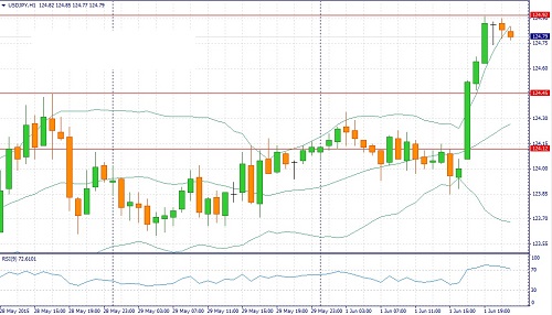 В течение дня следует ожидать плавного роста котировок. Отчет по деловому климату в производственном секторе США от ISM указывает на рост промышленного производства. В 11 отраслях был отмечен рост заказов и в 14 отраслях отмечен рост занятости, в том числе и в нефтяном секторе, который в последние месяцы переживал нелегкие времена из-за низкой стоимости на энергоносители. Прогнозы Федрезерва о восстановлении американской экономики во втором квартале начинают реализовываться и в этой связи на валютном рынке вновь усилятся слухи относительно повышения ставок по федеральным фондам. В этой связи нас ожидает продолжение восходящего тренда и на коррекции следует наращивать длинные позиции. На этом фоне в течение дня следует открывать позиции Buy на снижении котировок в область 124.50/124.10 и фиксировать прибыль на отметке 124.92. Необходимо выделить следующие уровни: уровни поддержки: уровни поддержки: 124.45 – 124.12 и уровни сопротивления: 124.92 – 125.75.