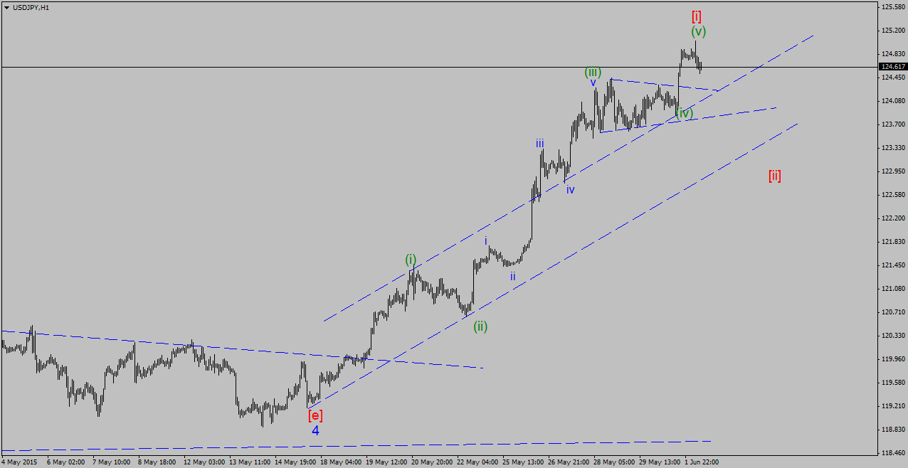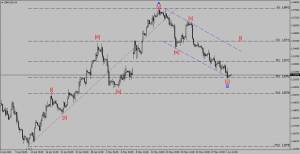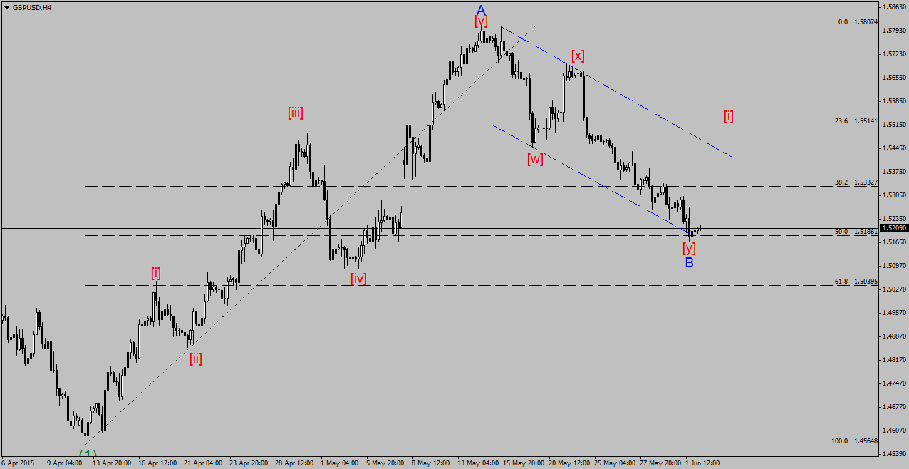 Основной вариант все тот же - формирование волны (ii) of [iii]. В случае его реализации первая цель снижения в районе 1.05. Однако последние движения по паре носят неимпульсный характер, поэтому в приоритете развитие треугольника в волне b of (ii) с выходом в район 1.1060.