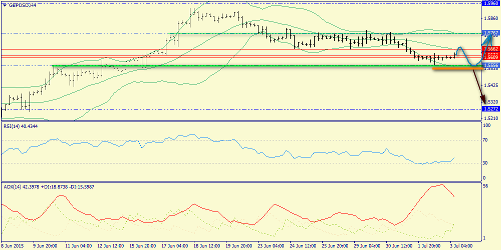Н1: выраженный бычий моментум, но пока недостаточно активный ADX, что может говорить о подготовке прорыва верхнего конверта и затем ретесте средней полосы Боллинджера (1.5609), откуда мы будем покупать фунт.
