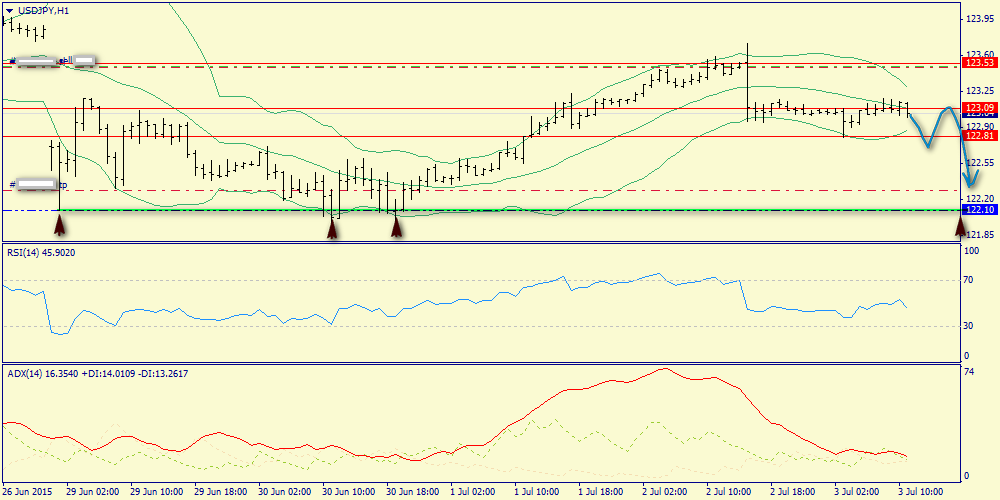 В этой валютной паре следует ожидать преобладание бычьих настроений. Если участники рынка будут настроены позитивно в отношении американской валюты – нас ожидает спрос на доллар. Однако снижение доходности 2-х летних казначейских облигаций после слабых данных по среднему заработку за июнь указывает на снижении ожидания скорого ужесточения монетарной политики Федрезервом и этот фактор является негативным для доллара. Стоит отметить, что даже в этом негативе есть позитив для быков – снижение доходностей государственных облигаций будет способствовать притоку капиталов на американский фондовый рынок, что в свою очередь вызовет новую волну сделок carry trade и будет оказывать давление на японскую йену, как валюту фондирования. На этом фоне в течение дня следует открывать позиции Buy на снижение котировок в область 122.90/122.55 и фиксировать прибыль на отметке 123.35. Необходимо выделить следующие уровни: уровни поддержки: уровни поддержки: 122.90 – 122.45 и уровни сопротивления: 123.74 – 124.12.