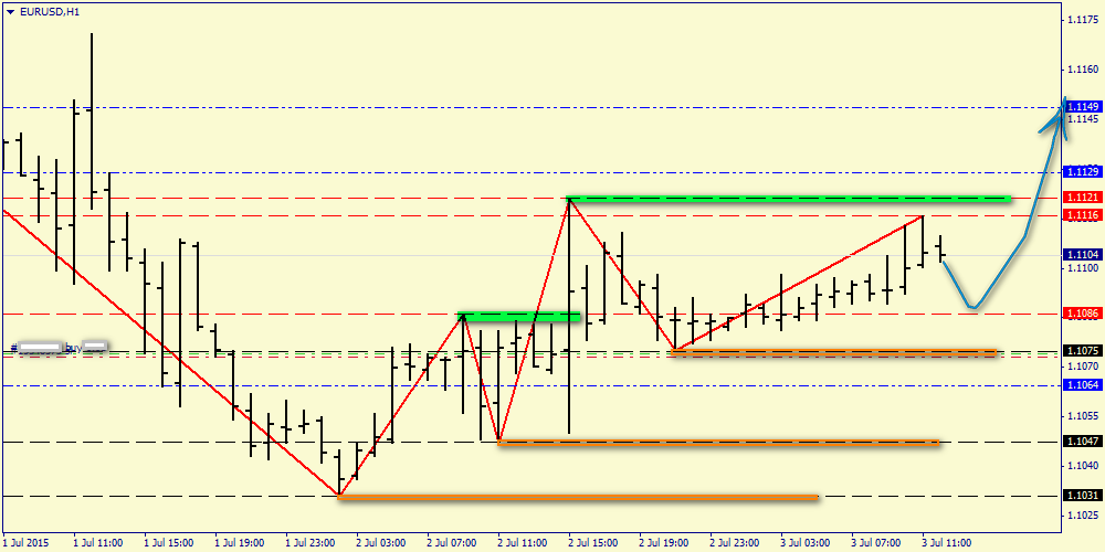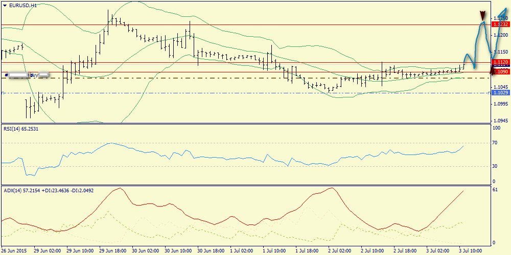 Опубликованный накануне релиз по рынку труда в целом можно считать позитивным. Уровень безработицы сократился до отметки 5.3%, что является минимальным уровнем с мая 2008 года. В частном секторе создается более 200 тыс. новых рабочих мест в течение всего второго квартала, что указывает на уверенный экономический рост. Единственное, что огорчило – это отсутствие роста среднего заработка. В этой связи не стоит ждать ускорения инфляции, а за инфляцией внимательно следит ФРС США при принятии решений по ставкам. Сегодняшний день будет не столько богат на важную макроэкономическую статистику. В Соединенных Штатах банки закрыты на фоне выходного дня из-за празднования Дня независимости 4 июля. Следует, пожалуй, лишь выделить отчет по розничным продажам в еврозоне за май. С одной стороны, слабые данные по индикаторы потребительской уверенности в еврозоне не позволяет рассчитывать сегодня на выход данных лучше консенсус-прогноза. С другой стороны, Германия уже отчиталась на этой неделе о росте продаж в ритейл-секторе, что вселяет оптимизм. С учетом смешанного новостного фона можно ожидать выхода данных в пределах медианы прогнозов с небольшими отклонениями. Однако самое важное событие для пары евро/доллар еще впереди - новые переговоры между Афинами и тройкой кредиторов намечены на понедельник 6 июля сразу же после народного референдума. На долговом рынке наблюдается рост доходности государственных облигаций Германии по отношению к своим аналогам из США и Великобритании, что является позитивным фактором для единой европейской валюте. На этом фоне в течение дня следует ожидать флэта в рамках диапазона 1.1025-1.1135. На сегодня можно выделить следующие уровни: уровни поддержки 1.1051 - 1.0958 и уровни сопротивления: 1.1096 -1.1130.