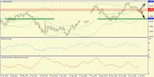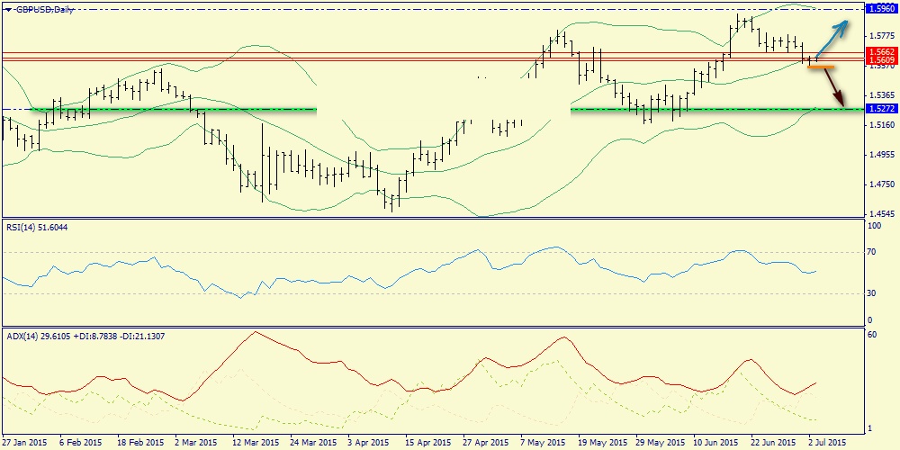 Дневной график: средняя полоса Боллинджера перспективно удержала вчера медведей, что дает возможность для атаки быков вплоть до верхней полосы (1.5960).