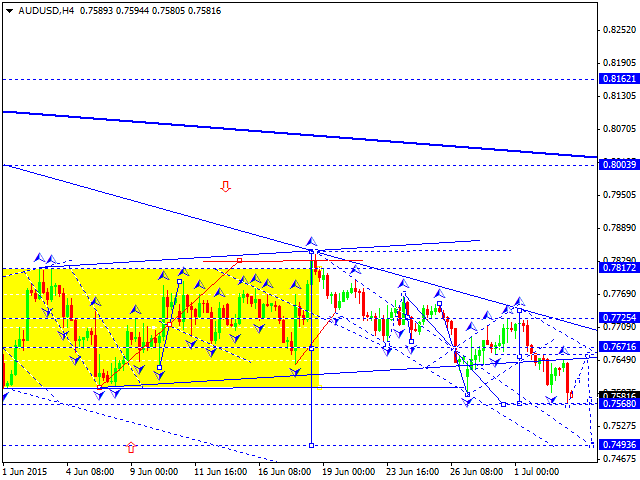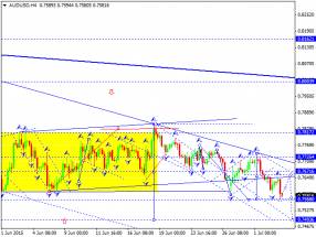 Австралийский доллар к доллару США отработал очередную матрицу снижения. На очереди - возврат к уровню 0.7672, тест снизу. Далее - опять снижение на перекрытие уровня 0.7500.