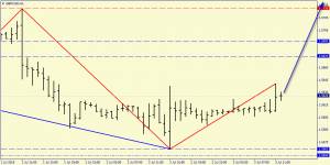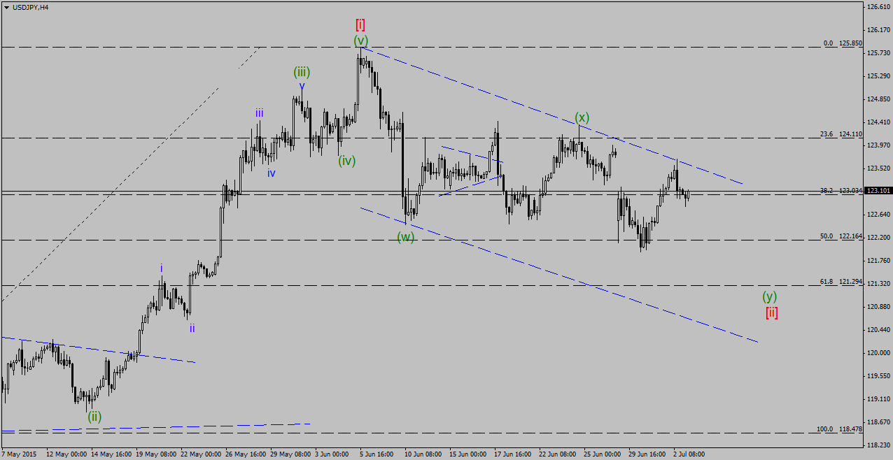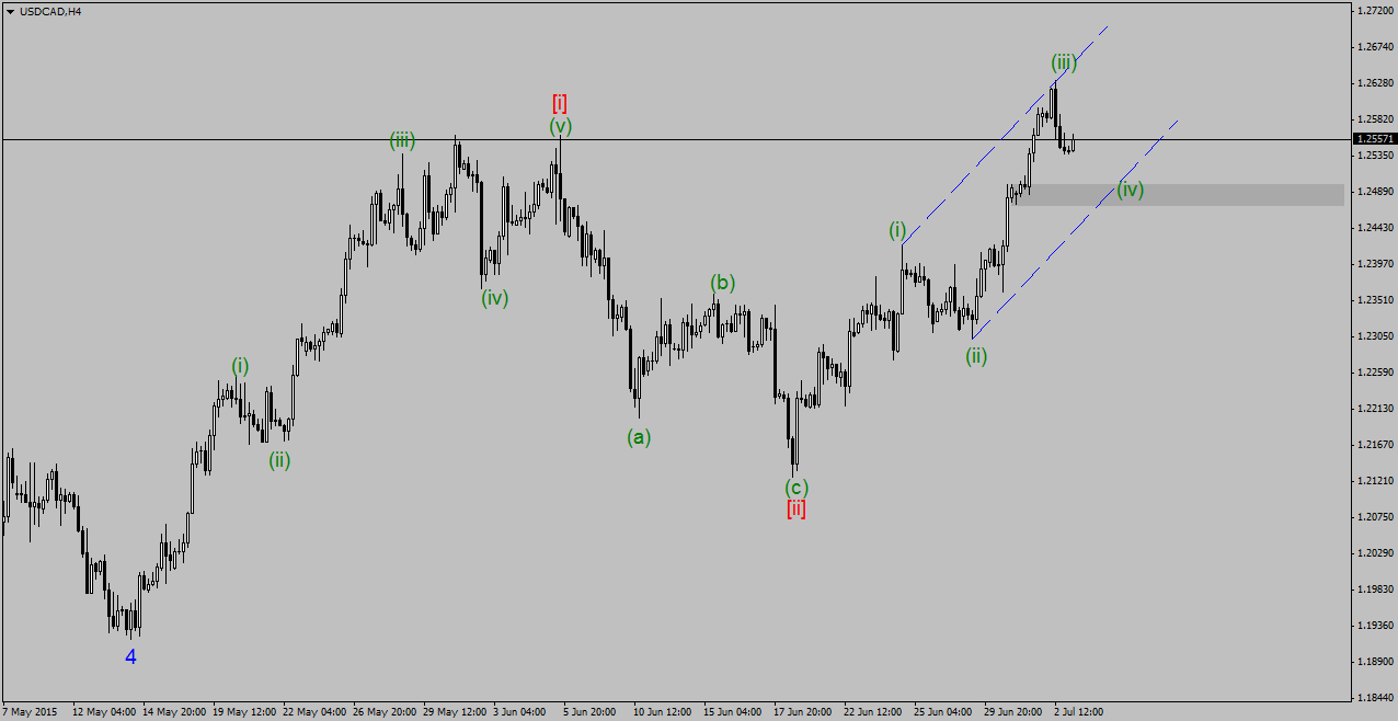 Согласно нашему сценарию добрались до уровня 1.26. Начался коррекция в рамках волны (iv). Хороший уровень для снижения - 1.2480. Однако в силу того, что прошло достаточно резкое движение наверх вполне может начаться боковая коррекция, в виде треугольника например.