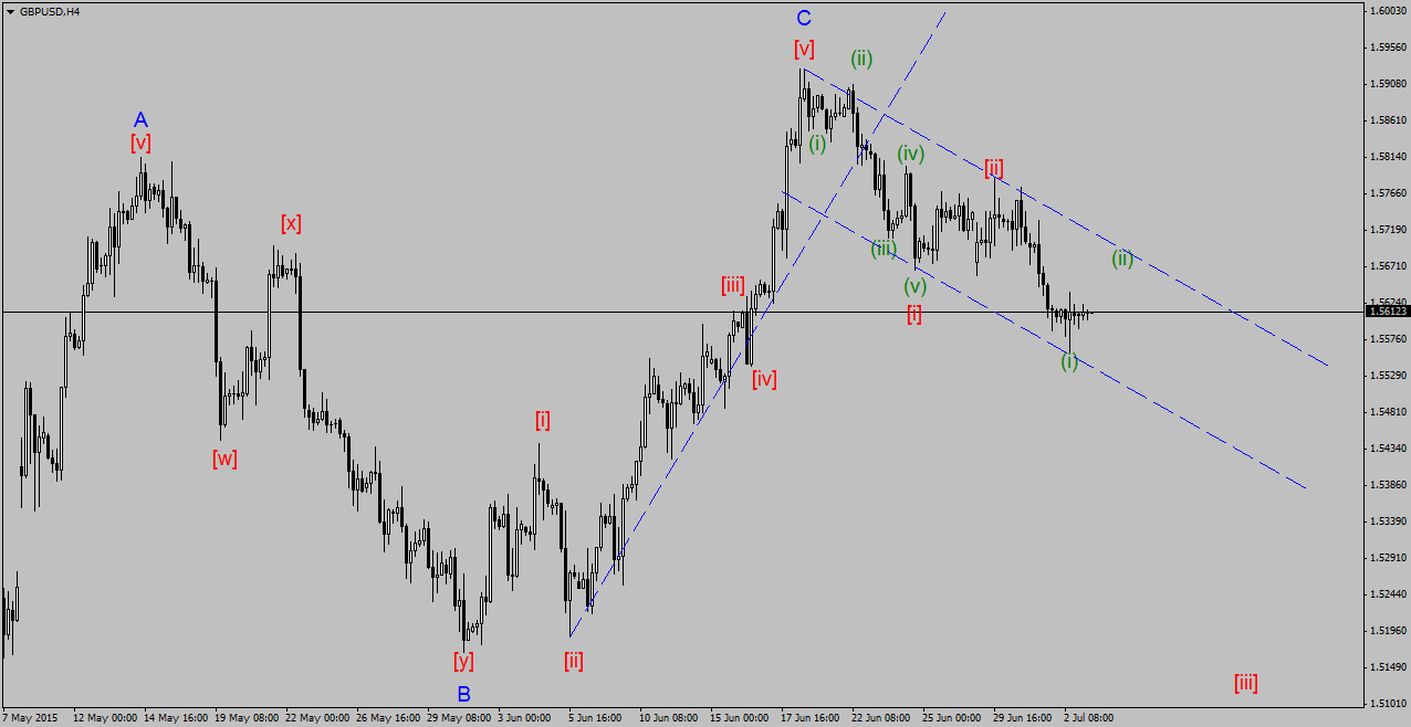 Вероятно, развивается коррекция в раках волны (ii) of [iii]. Цель - 1.5670. После завершения коррекции ожидаю пробитие вниз нижней границы нисходящего канала.