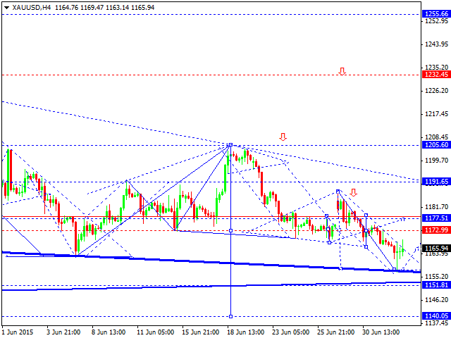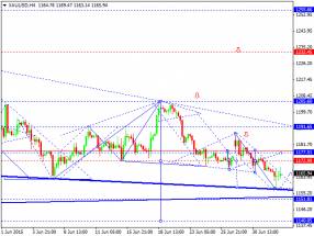 Золото отработало очередную матрицу снижения. На очереди - тест снизу 1173. Далее - опять снижение на перекрытие уровня 1140. Затем опять ожидаем возврат к уровню 1173. После - новое снижение на отработку уровня 1113.
