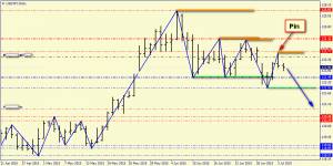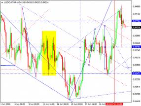 Валютная пара доллар франк торгует структуру снижения к уровню 0.9350. Далее ожидаем рост на обновление максимумов с перекрытием уровня 0.9545. Затем рассмотрим продолжение снижения обратно к уровню 0.9350.