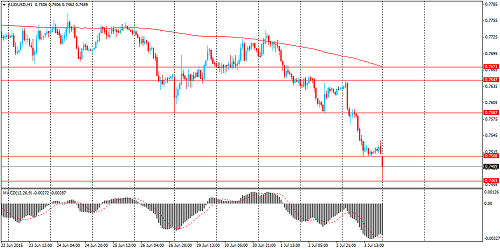 Технический анализ по AUD/USD Сопротивление 3: $0.7650/70 (максимум 3 июля, МА (200) Н1) Сопротивление 2: $0.7590 (минимум 2 июля) Сопротивление 1: $0.7510 (минимум 3 июля) Текущая цена: $0.7489 Поддержка 1: $0.7465 (сессионный минимум) Поддержка 2: $0.7390 (максимум 30 апреля 2009 года) Поддержка 3: $0.7330 (минимум 6 мая 2009 года)