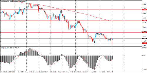 Технический анализ по NZD/USD Сопротивление 3: $0.6880 (максимум 29 июня) Сопротивление 2: $0.6810 (максимум 1 июля, МА (200) Н1) Сопротивление 1: $0.6735 (максимум 2-3 июля) Текущая цена: $0.6691 Поддержка 1: $0.6660 (минимум 2 июля) Поддержка 2: $0.6620 (минимум 20 мая 2010 года) Поддержка 3: $0.6560 (минимум 25 мая и 8 июля 2010 года)