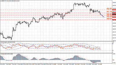 Поддержка располагается на уровне 190.00. Её преодоление спровоцирует снижение инструмента до уровня 189.00. Если состоится прорыв сопротивления, находящегося в данный момент на уровне 191.70, для пары откроется дорога до ценового уровня 192.90.