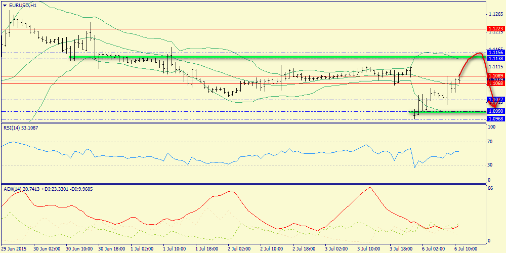 Сегодня можно ожидать открытия торгов с гэпа и повышенной волатильности в течение дня. Греция сегодня будет главным ньюзмейкером дня. Сегодня Афины и тройка кредиторов вновь сядут за стол переговоров и именно это событие определит динамику в паре евро/доллар на краткосрочную перспективу. Из комментариев, которые были сделаны на минувшей неделе, можно сделать вывод, что стороны смогут прийти к компромиссу. Таким образом, нам необходимо дождаться решения по “греческому долгу” и исходя из этого, принимать торговые решения. На этом фоне в течение дня следует ожидать флэта в рамках диапазона 1.1045-1.1175. На сегодня можно выделить следующие уровни: уровни поддержки 1.1096 - 1.1051 и уровни сопротивления: 1.1130 -1.1216.