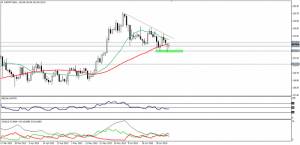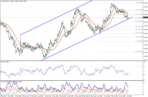Пара вновь показала Геп вниз, но уровень 50% коррекции Фибоначчи (1,0950) сдержал падение и отправил пару вверх закрывать разрыв. Торговля ниже скользящих средних указывает на отрицательное давление, но мы должны увидеть тип разрыва, чтобы определиться с дальнейшим поведением пары. Соответственно, мы вне рынка отметив, что пробой уровня поддержки 1,0950 отправит пару вниз.