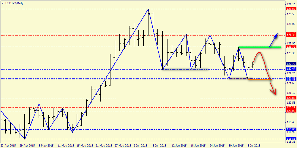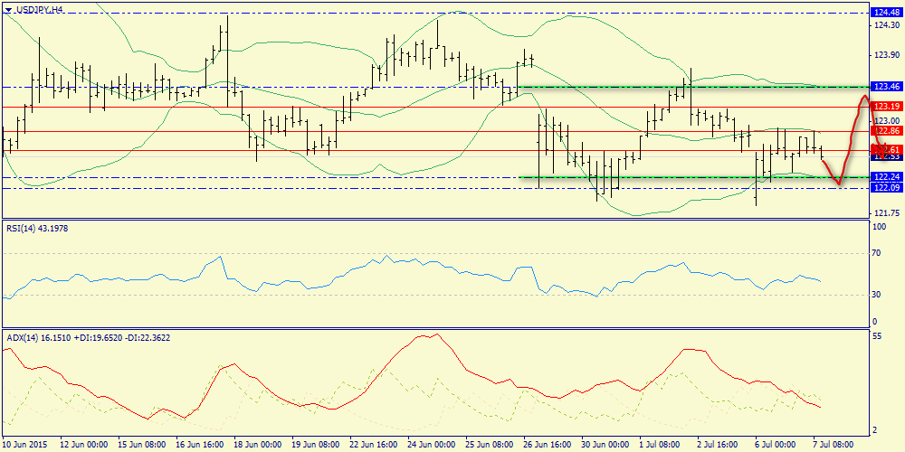 С открытием европейских торгов Германия опубликует релиз по промышленному производству за май. Рост производственных заказов по итогам марта и апреля указывает на увеличение производственных мощностей, однако динамика индекса PMI производственного сектора демонстрирует минимальный рост и в этой связи можно ожидать выхода данных в пределах медианы прогнозов, что не окажет сильного влияния на котировки. С учетом негативной динамики товарного рынка можно ожидать плавного укрепления американской валюты в первой половине дня. Во второй половине дня следует обратить внимание на публикацию данных по торговому балансу США. Ревальвация американской валюты является негативным фактором для экспорта, что подтверждает отрицательная динамика промышленного производства. При этом рост экспорта в Китае указывает на увеличение импорта в структуре американского торгового баланса. В этой связи, можно ожидать выхода данных чуть хуже медианы прогнозов, что окажет некоторое давление на американскую валюту. Однако основным событием дня сегодня все же станет решение вопроса по “греческому долгу”. В американскую торговую сессию станут известны итоги Евросаммита. Динамика долгового рынка (расширение спрэда облигаций Греции и Германии) указывает на то, что либо стороны не смогут прийти к компромиссу и будет назначена новая встреча, либо Афинам полностью откажут в помощи. На этом фоне в течение дня следует ожидать флэта в рамках диапазона 1.0975-1.1100. На сегодня можно выделить следующие уровни: уровни поддержки 1.1051 - 1.0958 и уровни сопротивления: 1.1096 -1.1130.