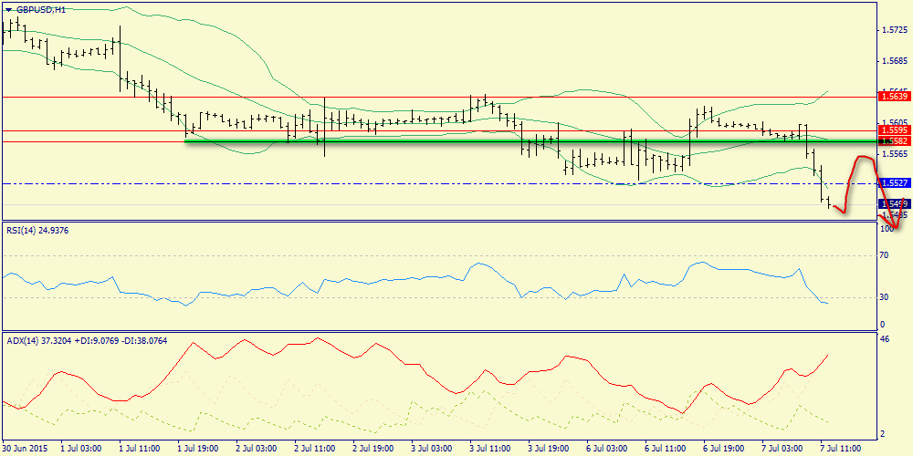 В первой половине дня следует ожидать преобладания медвежьих настроений. Национальный офис статистики опубликует отчет по промышленному производству за май, который не сможет порадовать инвесторов сильными данными. Во-первых, индекс PMI производственной сферы во втором квартале демонстрирует негативную тенденцию. Во-вторых, укрепление британской валюты по отношению к евро негативно сказывает на экспорте Соединенного Королевства. Динамика долгового рынка сейчас также на стороне медведей – отрицательный спрэд доходностей государственных облигаций Великобритании и США расширяется. Нельзя обойти стороной и распродажи на рынке “черного золота” – нефть марки Brent торгуется ниже психологического уровня 60$/баррель, что также является негативным фактором для британской валюты, поскольку на энергетический сектор приходится порядка 10% ВВП Великобритании. Как было отмечено ранее – во второй половине дня можно ожидать выхода умеренно негативной статистики из Соединенных Штатов и в этой связи некоторой стабилизации рынка. На этом фоне в течение дня следует открывать позиции Sell на росте котировок в область 1.5625/1.5658 и фиксировать прибыль на отметке 1.5535. Необходимо выделить следующие уровни по паре фунт/доллар: уровни поддержки: 1.5592 - 1.5551 и уровни сопротивления: 1.5625 – 1.5673.