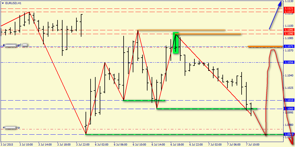 2) Ждем окончание нисходящего свинга и, либо покупаем к 1.1075, либо пропускаем его для входа в продажи на его вершине