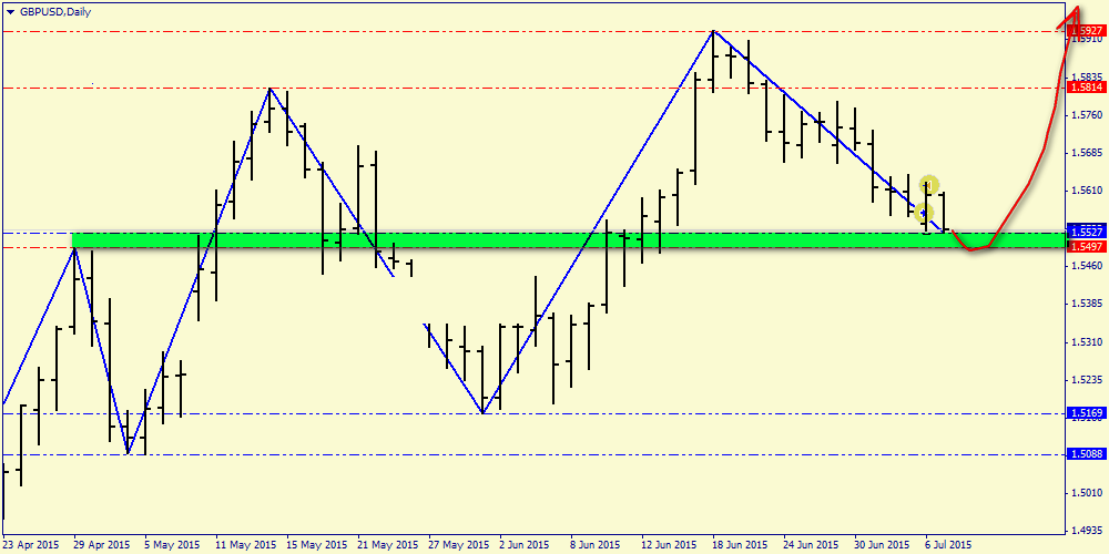 Дневной график: пара в зоне возможного пивота 1.5497-1.5527, что может спровоцировать начало нового среднесрочного восходящего свинга с целями на новых максимумах.