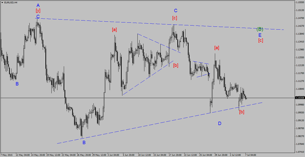 В приоритете формирование волны [с] of E of (B). В случае пробоя минимума волны D и начала ускорения падения можно будет говорить о завершении всего треугольника на уровне 1.1280.