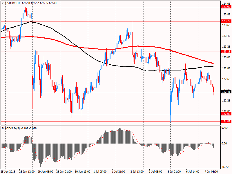 Дневной технический анализ по USD/JPY Сопротивление 3: Y123.99 (максимум 26 июня) Сопротивление 2: Y123.72 (максимум 7 июля) Сопротивление 1: Y123.16 (МА(100) для Н4) Текущая цена: Y122.41 Поддержка 1: Y122.00 (психологический уровень) Поддержка 2: Y121.86 (минимум 6 июля) Поддержка 3: Y121.43 (минимум 25 мая)
