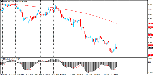 Технический анализ по AUD/USD Сопротивление 3: $0.7590/0.7610 (минимум 29 июня и 2 июля, МА (200) Н1) Сопротивление 2: $0.7530 (максимум 6 июля) Сопротивление 1: $0.7465 (минимум 6 июля) Текущая цена: $0.7445 Поддержка 1: $0.7396 (минимум 7 июля) Поддержка 2: $0.7330 (минимум 6 мая 2009 года) Поддержка 3: $0.7235 (максимум 24 апреля, минимум 1 мая 2009 года)