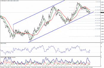 Вчера пара попыталась вырасти, но не смогла пробить уровень сопротивления 1,1065 (38,2% коррекции Фибоначчи). Скользящие средние находятся выше цены, в то время как RSI торгуется ниже от метки 50,00 и эти факторы являются отрицательным моментом. Тем не менее, для подтверждения нисходящего движения нам необходим пробой уровня поддержки 1,0950, и в рамках диапазона 1,1065 - 1,0950 мы предпочитаем оставаться вне рынка.