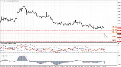 Успешное тестирование текущей поддержки на 14.65 предоставит возможность движения по направлению к 14.30 долларов за одну унцию. Неспособность разработки роста в условиях сложившегося кризиса в Греции считается тревожным сигналом для быков в отношении драгоценных металлов.