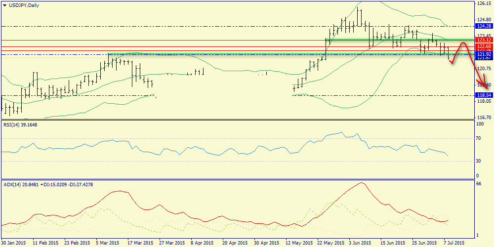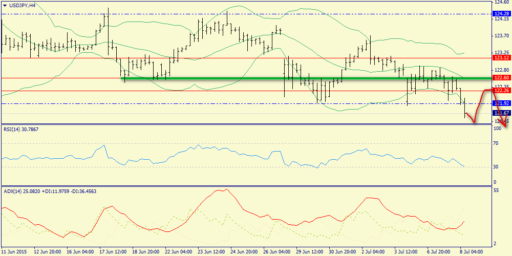 В азиатскую торговую сессию следует обратить внимание на публикацию данных по платежному балансу Японии за май. Увеличение отрицательного сальдо торгового баланса в совокупности с сокращением золотовалютных резервов банка Японии указывают на выход негативных данных, что будет оказывать давление на японскую валюту в краткосрочной перспективе. C открытием европейской торговой сессии динамику в паре USD/JPY будут определять настроения на фондовых площадках. Отсутствие у инвесторов “аппетита к риску” на фоне неопределенности вокруг решения по “греческому долгу” способствует умеренному спросу на японскую йену, как валюту фондирования. Также необходимо отметить и сокращение отрицательного дифференциала доходностей государственных облигаций Японии и США, что является позитивным фактором для медведей. С другой стороны, распродажи на рынке нефти, которые мы наблюдаем в последние пять торговых дней, являются позитивным фактором для доллара, поскольку стоимость черного золота деноминирована в американской валюте. На этом фоне в течение дня следует ожидать флэта в рамках диапазона 121.90 -123.10. Необходимо выделить следующие уровни: уровни поддержки: уровни поддержки: 122.02 – 121.84 и уровни сопротивления: 122.45 – 122.90.