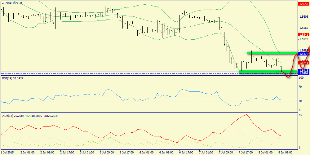 Еврозона сегодня не порадует трейдеров публикацией интересных макроэкономических релизов. Соединенные Штаты поздно вечером опубликуют протокол последнего заседания ФРС, однако это событие не вызовет сильной реакции со стороны участников рынка. Последнее заседание FOMC сопровождалось квартальным экономическим обзором, а также пресс-конференцией Д. Йеллен и в этой связи инвесторы уже получили все ключевые ориентиры и сполна их отыграли еще в июне. Безусловно, можно ожидать краткосрочного всплеска волатильности, однако сильных движений уже не будет. Несмотря на обещания премьера Греции Ципраса, что в течение 48-ми часов после народного референдума он подпишет в Брюсселе антикризисный план – никаких документов по антикризисному плану не подписано. Однако уже поздно вечером высокопоставленный представитель правительства Франции так прокомментировал дискуссию на Евросаммите: “Еврозона рассматривает возможность заключения краткосрочного соглашения с Грецией до воскресенья”. С учетом негативной динамики товарного рынка единая европейская валюта будет находиться под давлением, однако рост доходности немецких 10-летних государственных облигаций по отношению к бумагам из Великобритании будет способствовать росту котировок кросс-курса EUR/GBP, что в свою очередь будет сдерживать напор “медведей”. На этом фоне в течение дня следует открывать позиции Sell на росте котировок в область 1.1070/1.1100 и фиксировать прибыль на отметке 1.1005. На сегодня можно выделить следующие уровни: уровни поддержки 1.0958 - 1.0845 и уровни сопротивления: 1.1051 -1.1096.